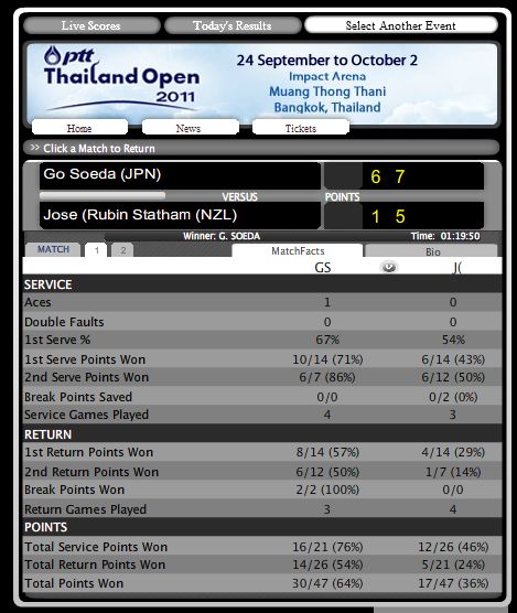def. JOSE (RUBIN) STATHAM (586位/ニュージーランド) 6-1 7-5