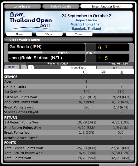 キャリアハイは昨年の10月の113位。故障でも抱えているのか、今季は出場大会数がこのレベルの選手にしては18と極端に少なく、今回のバンコク以前は、6週連続初戦敗退しています。